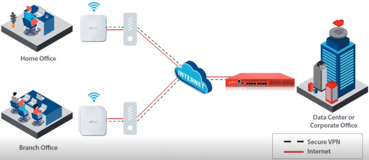 Die Kommunikation der Clients, die sich am WLAN des Remote Access Points anmelden, wird über eine sichere VPN-Verbindung an das Unternehmensnetzwerk oder in ein Rechenzentrum geleitet.